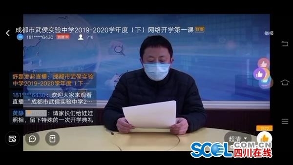 “没有开视频的同学请尽快把摄像头打开,我们马上要开始上课咯……首先,来看看田间校长和3位老师特意为大家录制的战‘疫'教育,如果有什么感触,请及时发上来与大家分享。”2月18日8:15分,成都石室中学2020年春季的开学第一课开始了,高三5班班主任、语文老师李挚正在家中,通过电脑组织班级“纪律”。