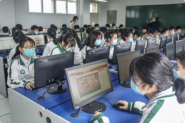 上午10时,在成都市第十七中学微机教室里,戴着耳机、手边放着笔记本,高二二班的47名同学进行了一场线上国家安全教育课程。